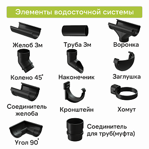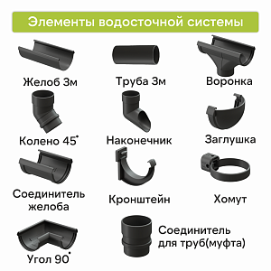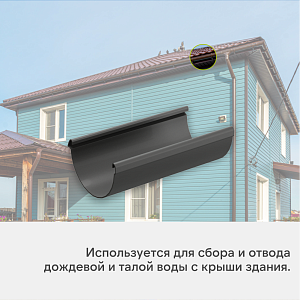 Для водостока можно использовать желоба прямоугольного и круглого сечения. Квадратный канал имеет ребра жесткости, но по дизайну подходит не к любой крыше. Водосток круглой формы более универсален, сочетается с любым дизайном здания. Трубы и желоба выпускают стандартной длины от 1 до 4 м. Диаметр труб от 63 до 110 мм, сечение желобов от 75 до 150 мм. Элементов таких размеров достаточно для коттеджа, дачи, кафе, магазина.